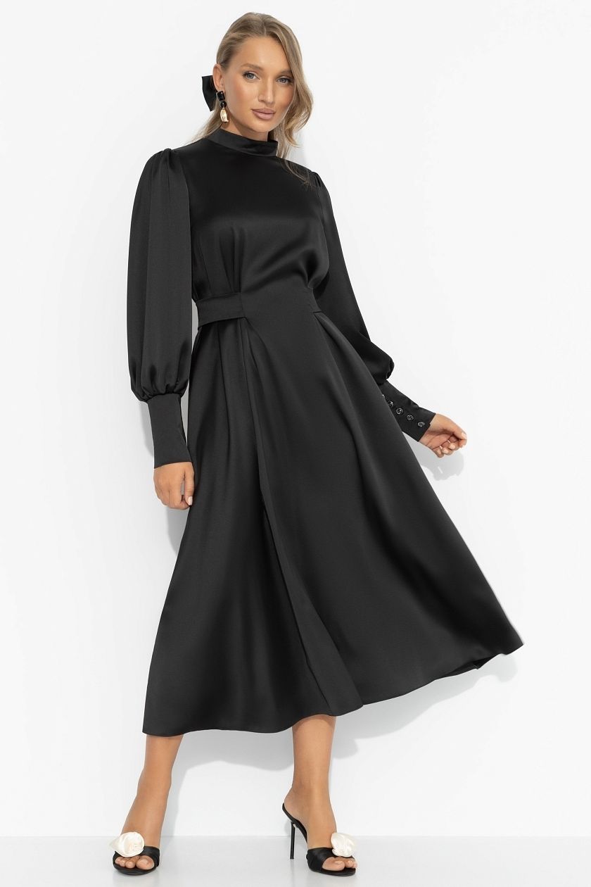 Платье чёрное из атласа