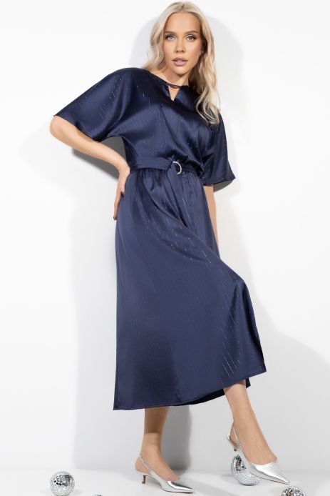 Платье длинное синее из шёлка