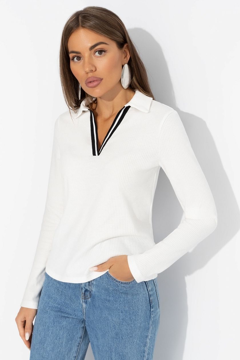 Поло белое с длинным рукавом
