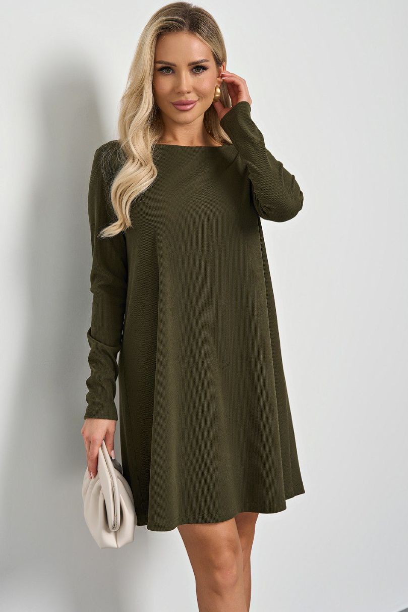 Платье трикотажное серо-голубого цвета с рукавом-фонарик Элси №2