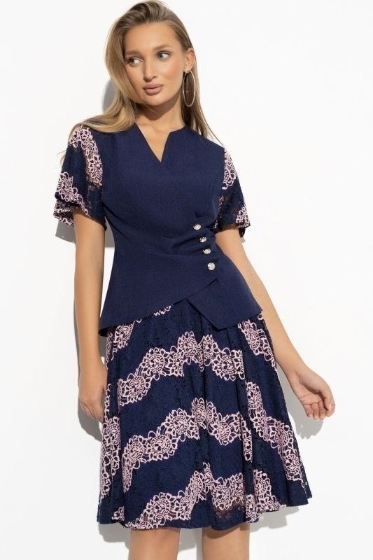 Костюм-двойка синий с юбкой