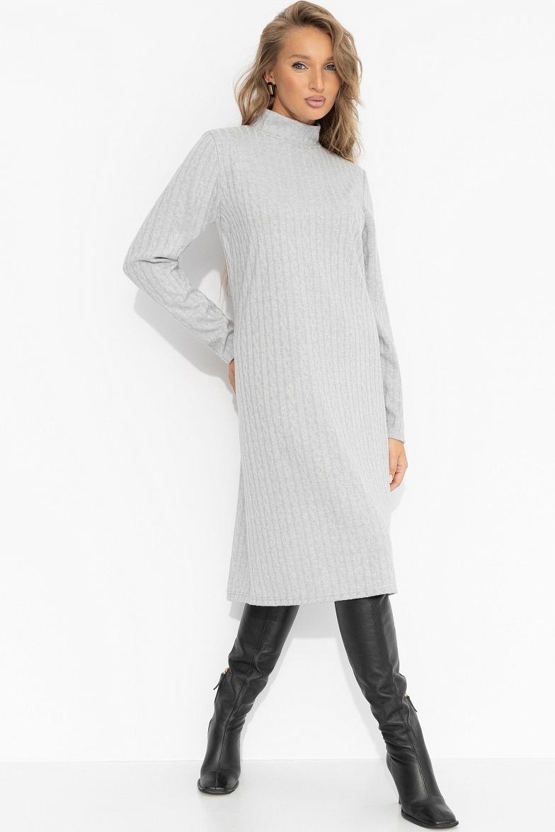 Платье серое из фактурного трикотажа