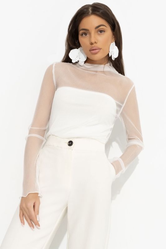 Водолазка белая со съёмным топом от компании Charutti. Модель полуприлегающего силуэта, выполнена из гофрированной сетки. Втачные длинные рукава. Это Ваш отличный образ, в котором вы всегда чувствуете себя уверенно.