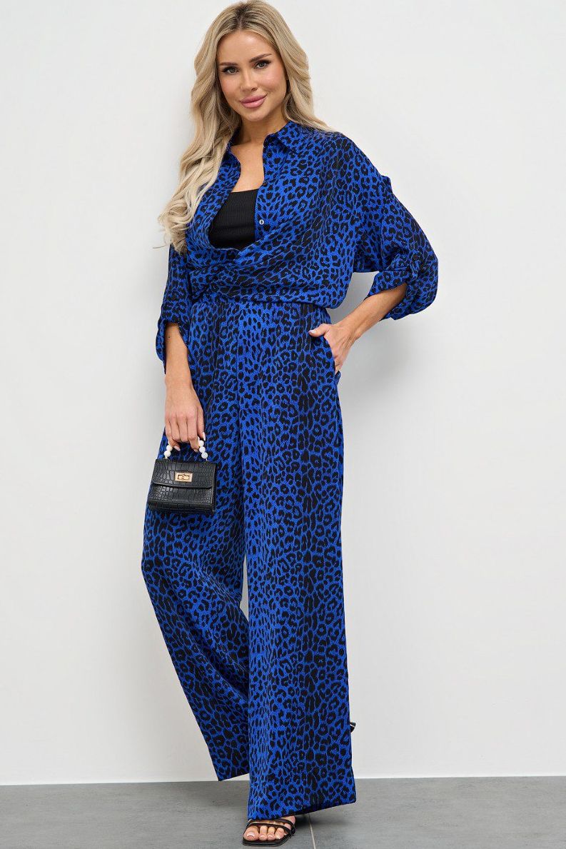 Рубашка синяя с леопардовым принтом