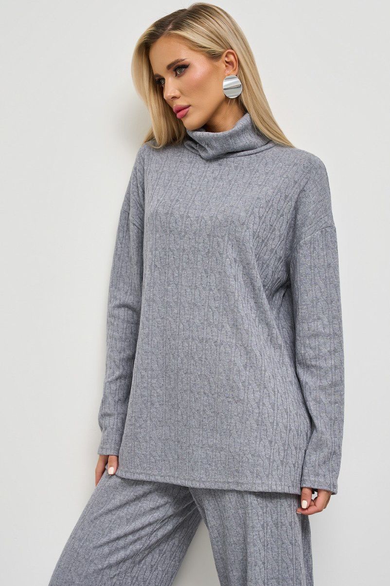 Джемпер серый свободный с разрезами по бокам
