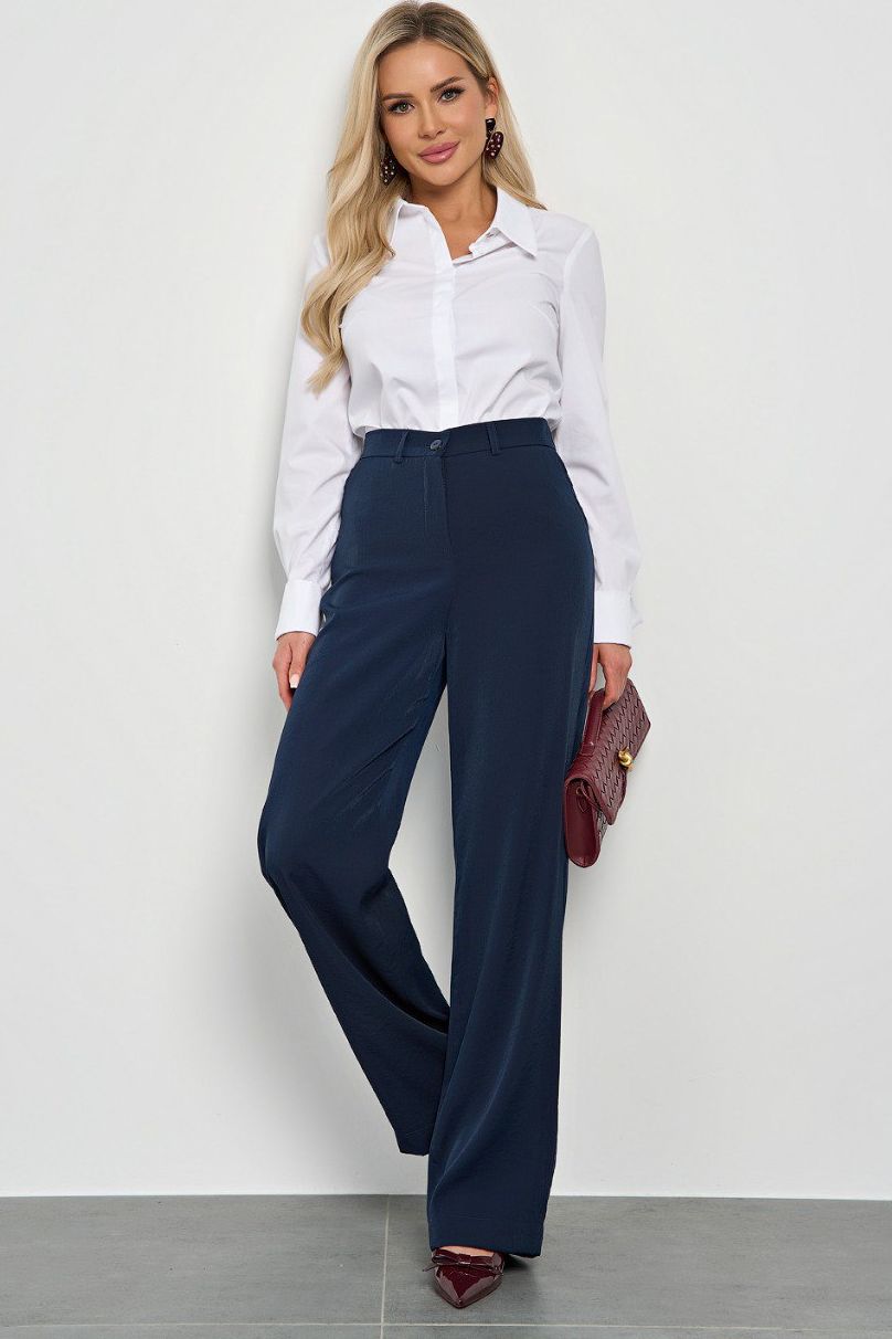 Брюки прямые тёмно-синие с карманами