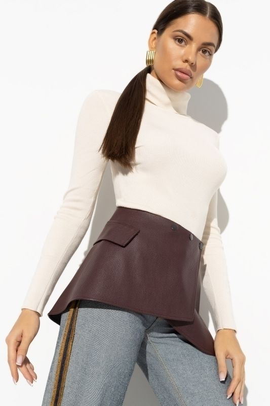 Пуловер трикотажный с имитацией рубашки в вишневом цвете