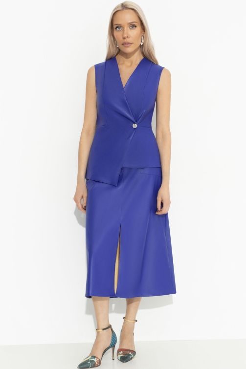 Юбка синяя из экокожи с разрезом от компании Charutti. Модель приталенного силуэта в длине миди. Посадка высокая, на талии. Изделие застегивается на молнию и пуговицу. Есть карманы.Идеальный выбор для создания женственного образа.