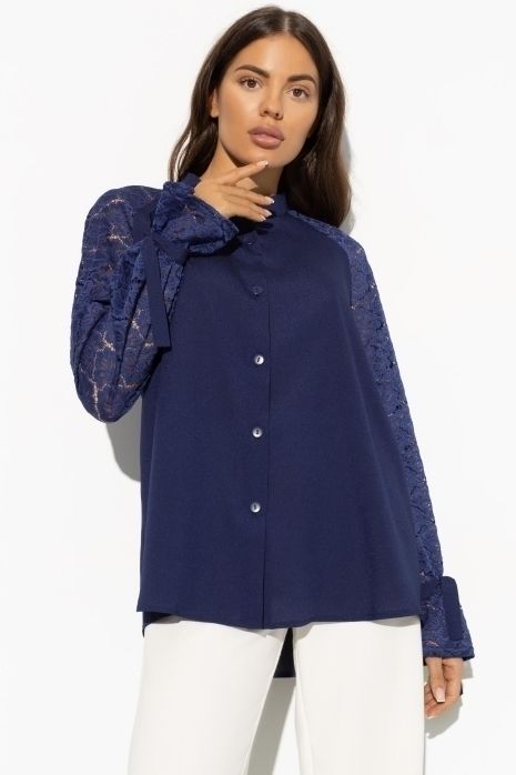 Блузка синяя с рукавами из кружева
