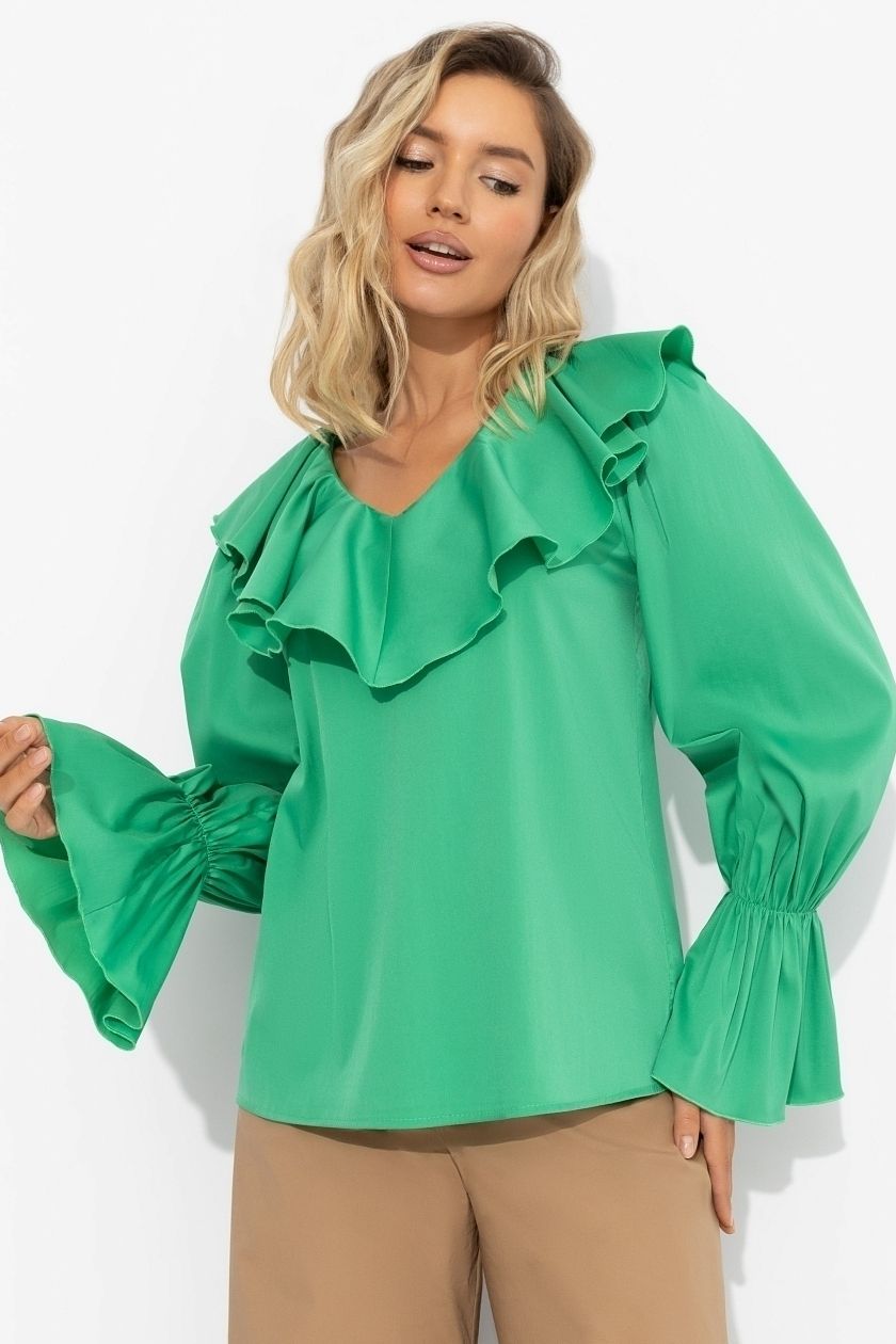 Блузка мятного цвета с разрезами на рукавах