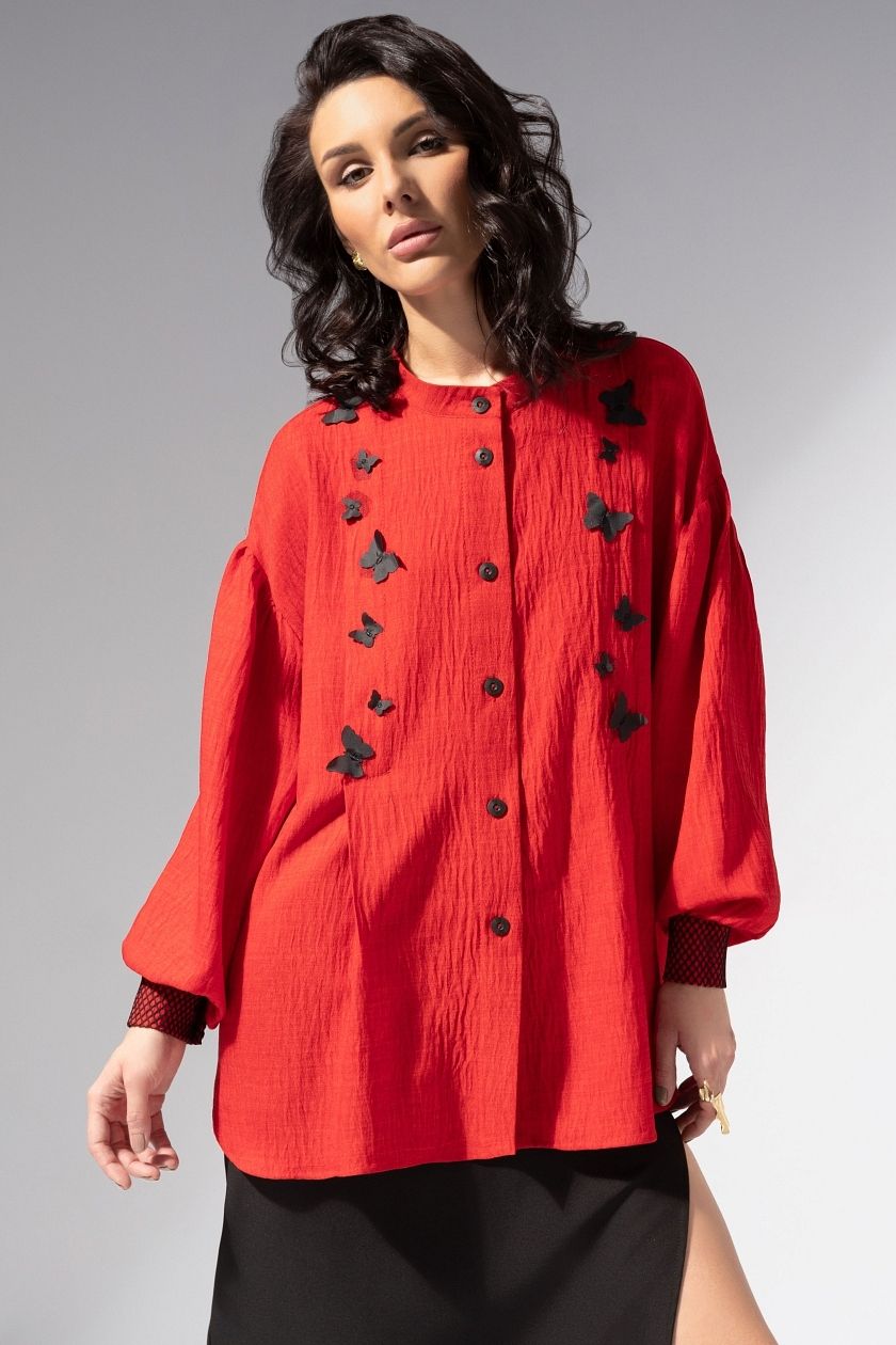 Рубашка красная с объёмным декором