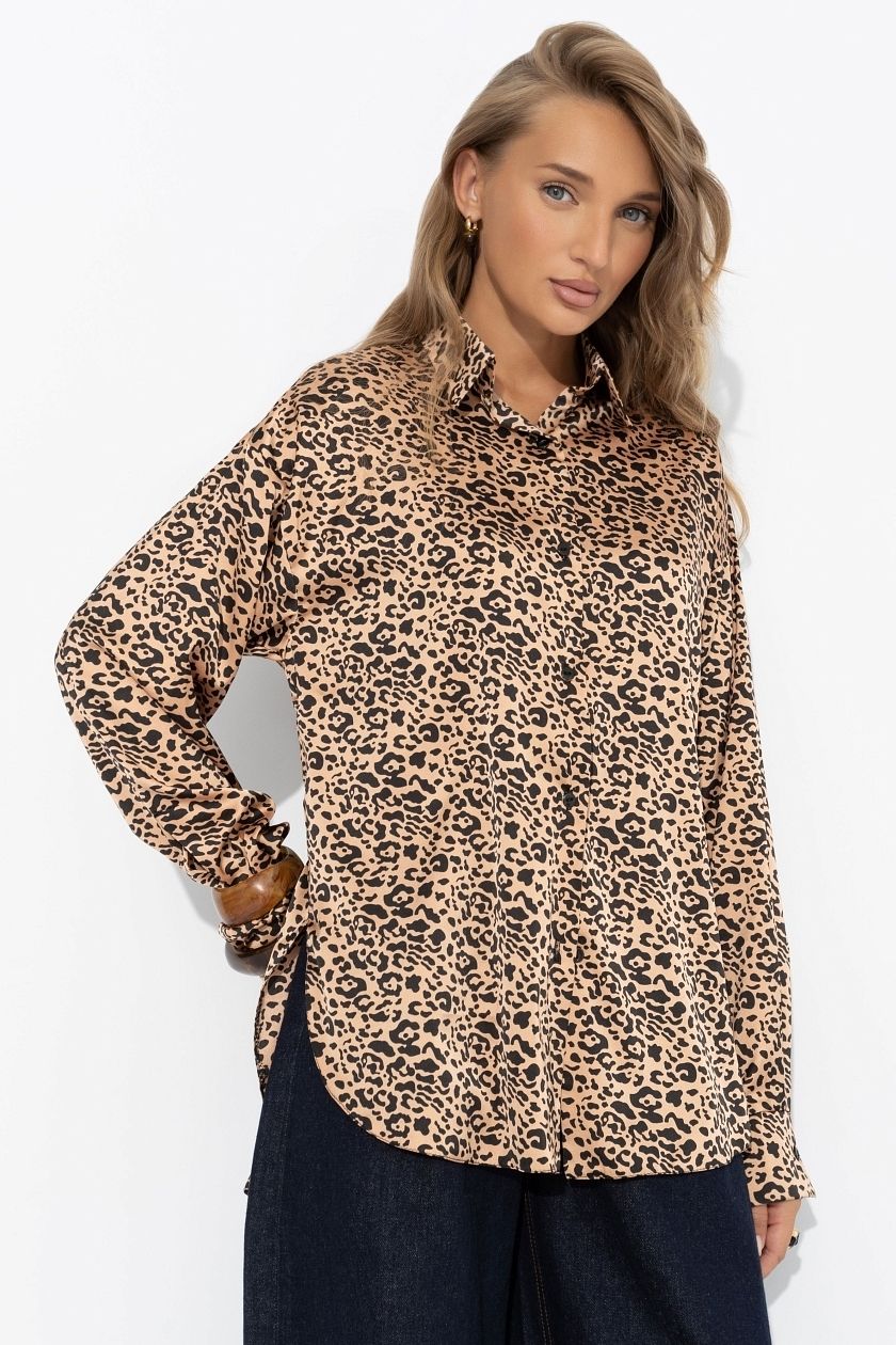 Рубашка бежевая с леопардовым принтом