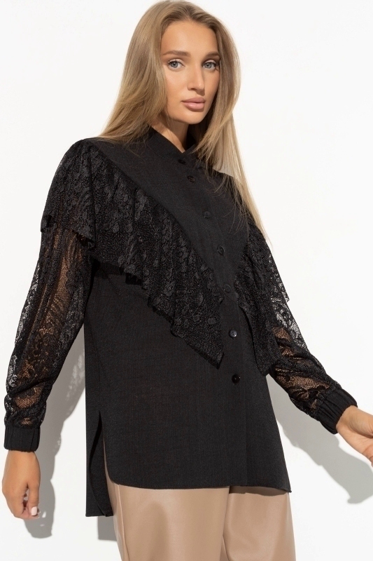 Рубашка чёрная с кружевом