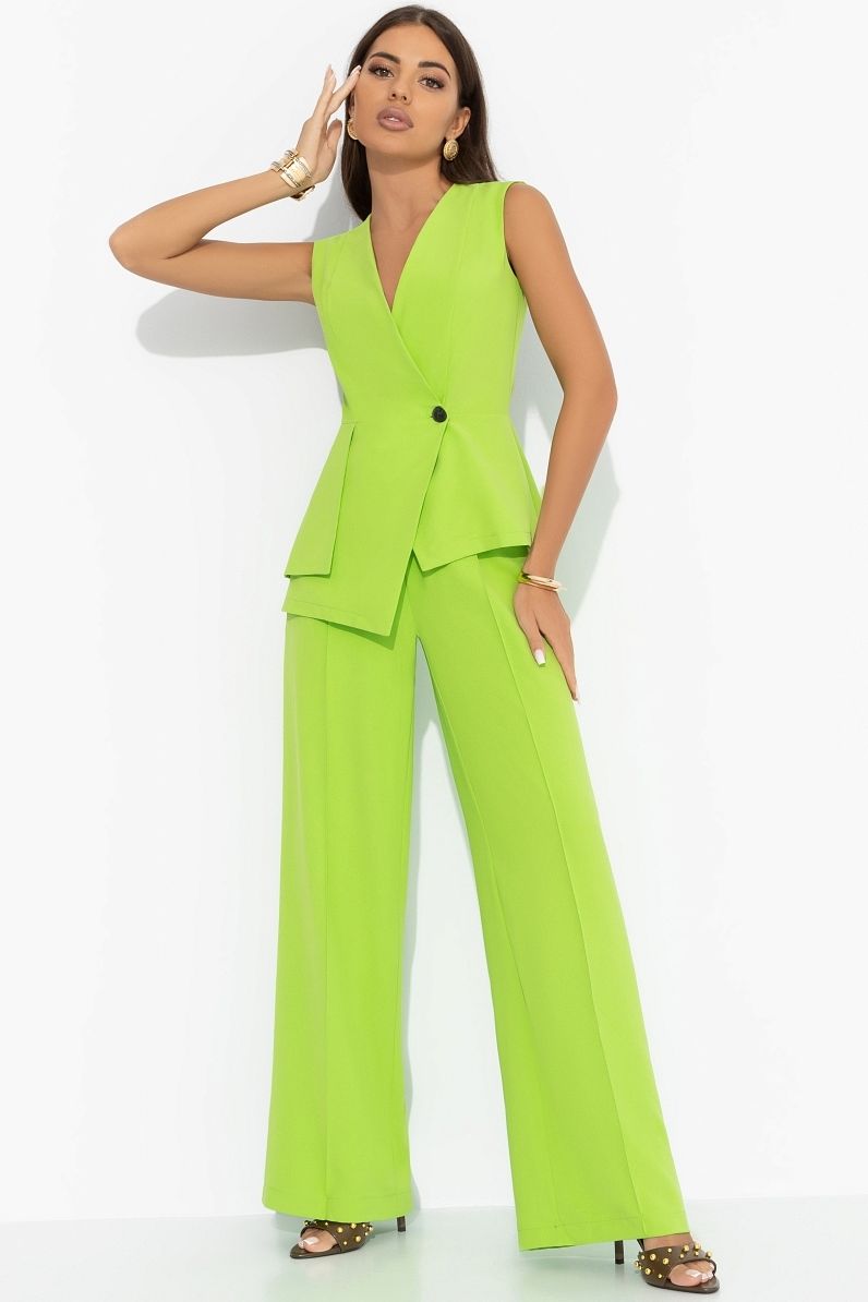 Брюки широкие со стрелками в цвете лайм