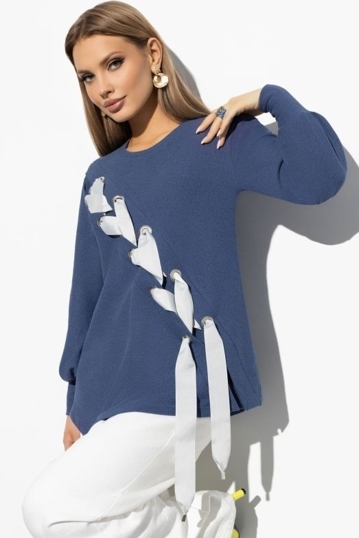 Синий джемпер с завязками контрастного цвета