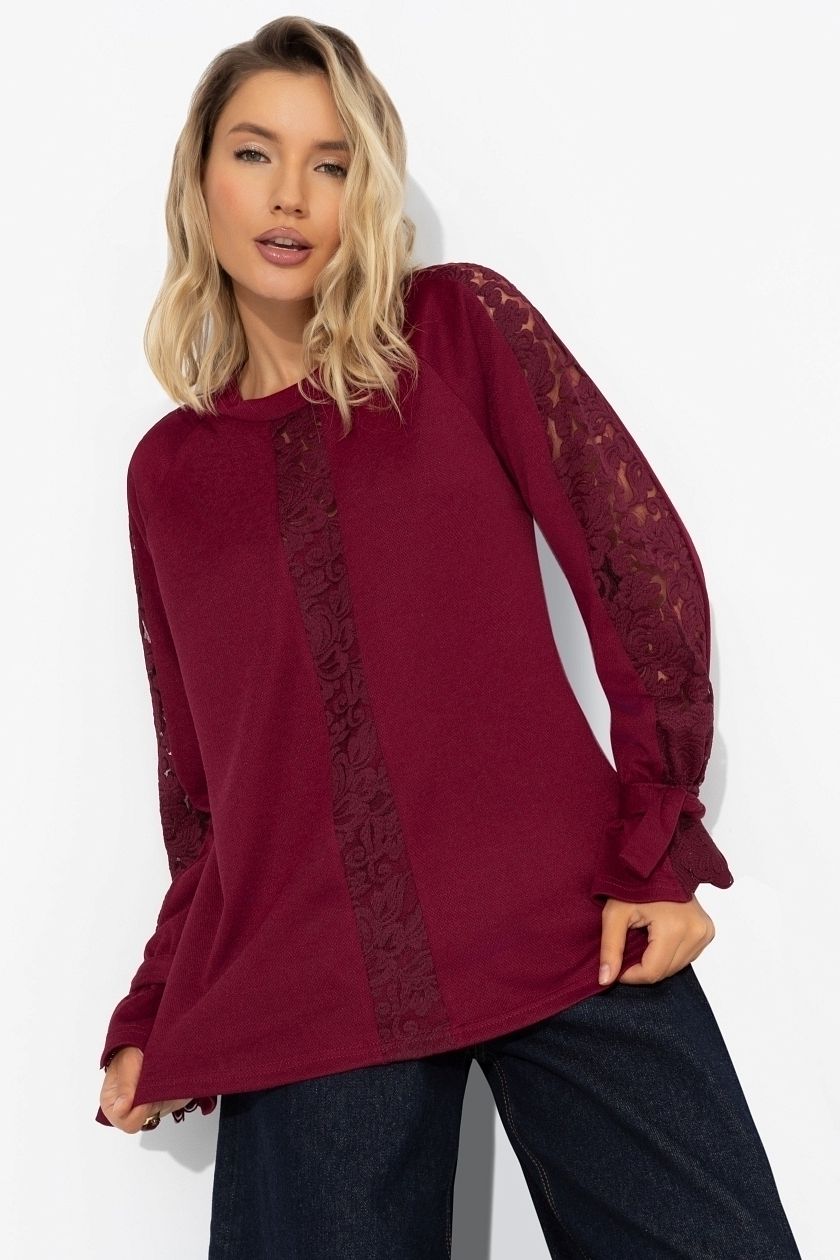 Свитшот трикотажный бордовый со вставками из кружева