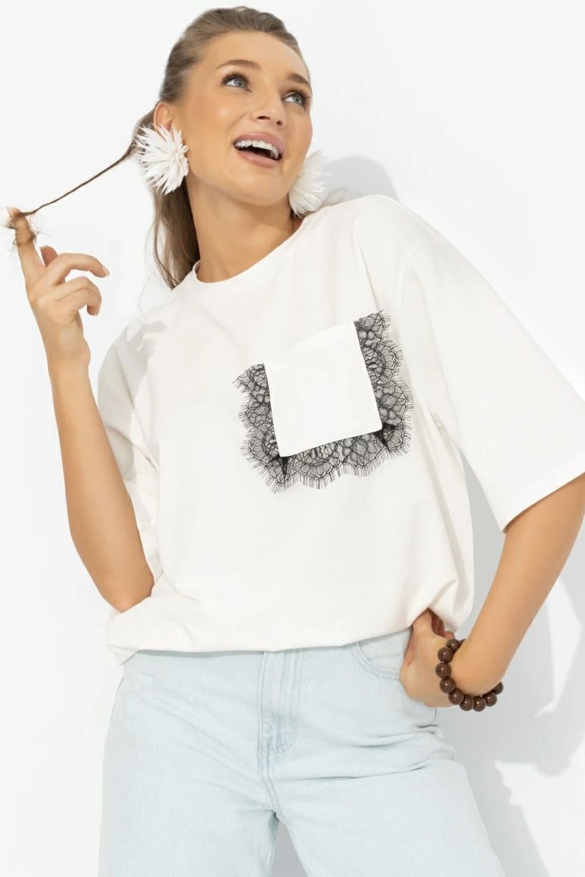 Футболка белая из мягкого хлопка от компании Charutti. Модель прямого силуэта, круглый вырез горловины. По переду накладной карман. Втачные короткие рукава, спущенная линия плеча. Идеальный выбор на каждый день.