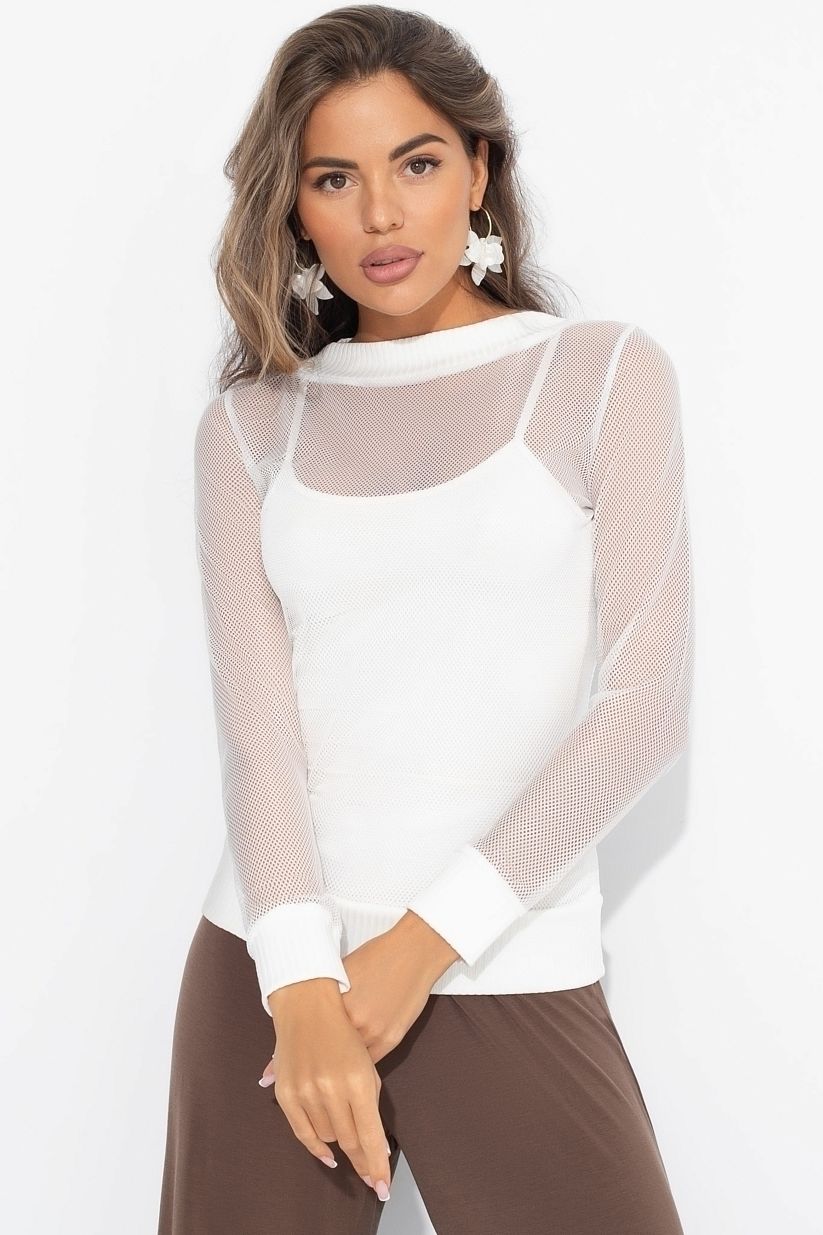 Лонгслив белый полупрозрачный