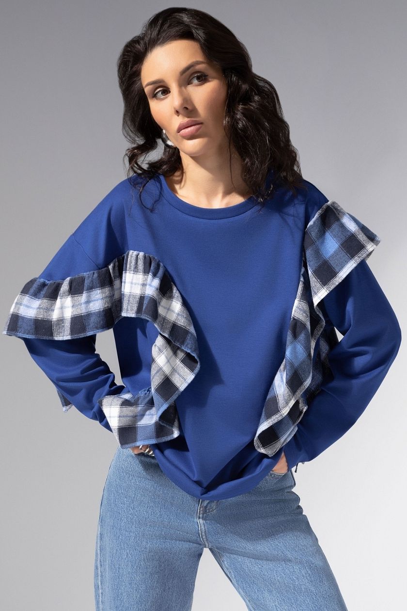 Лонгслив синий в стиле пэчворк
