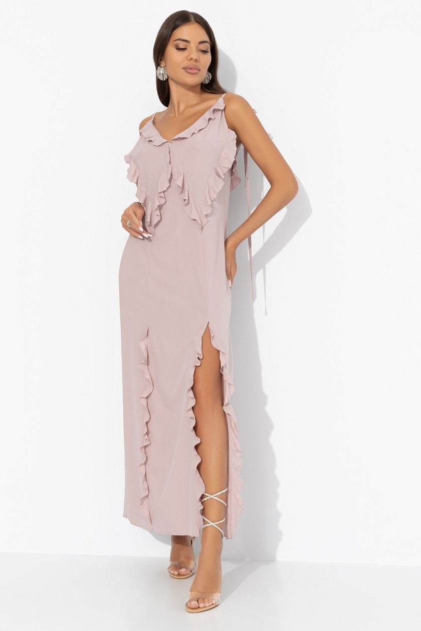 Платье длинное розовое с разрезами