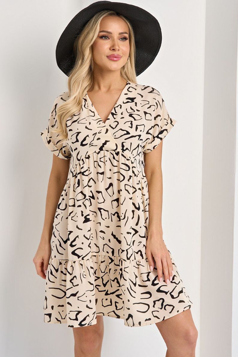 Платье короткое светло-бежевое с воланом