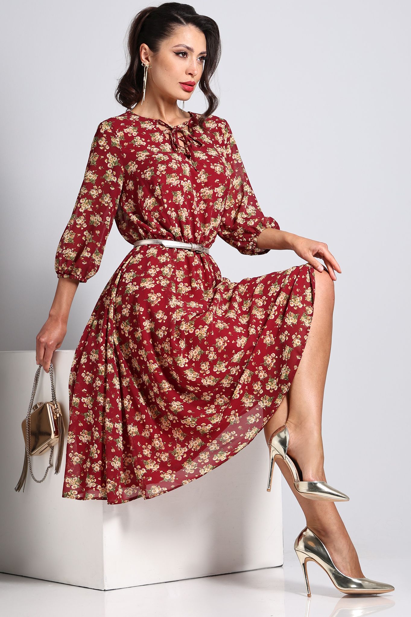 Платье воздушное шифоновое красное Девушка мечты, акцент