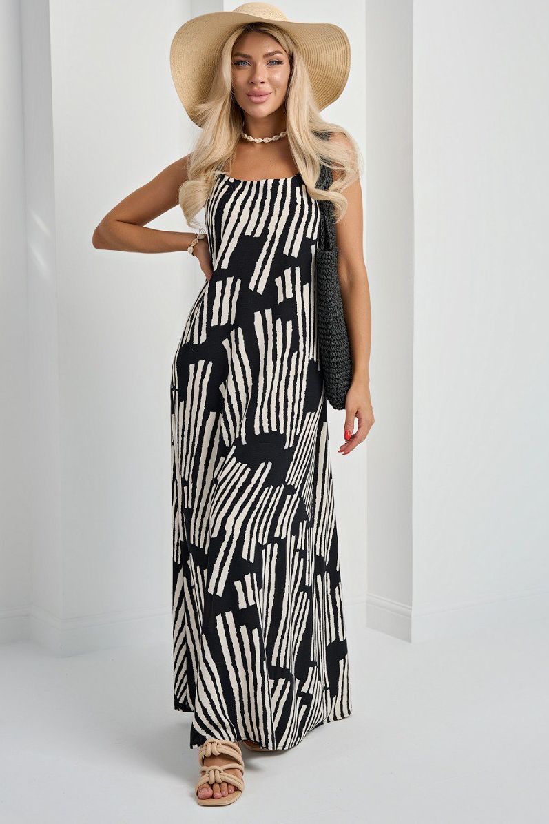 Сарафан макси чёрно-белый на бретелях