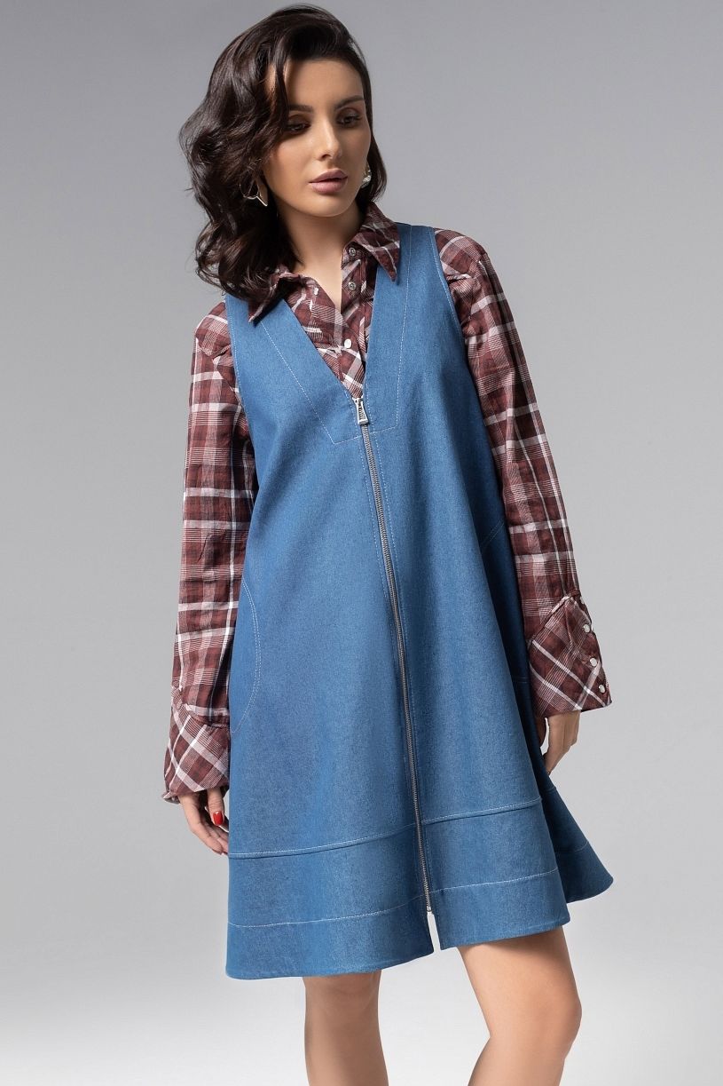 Сарафан синий объёмного кроя с карманами