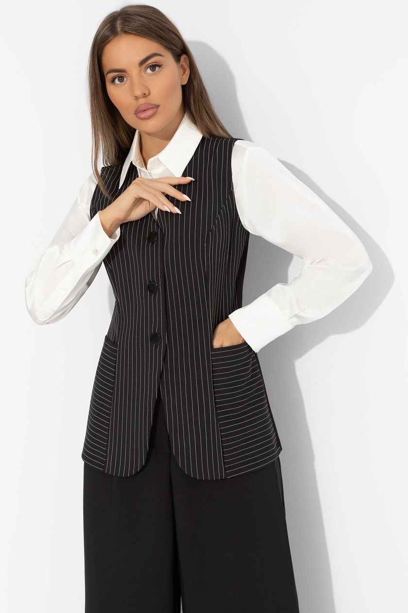 Жилет чёрный в полоску с накладными карманами
