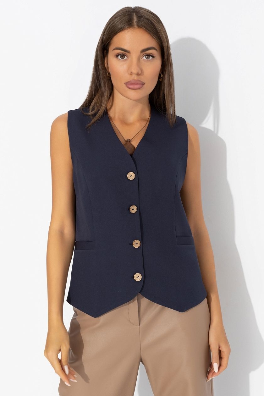 Жилет тёмно-синий приталенный